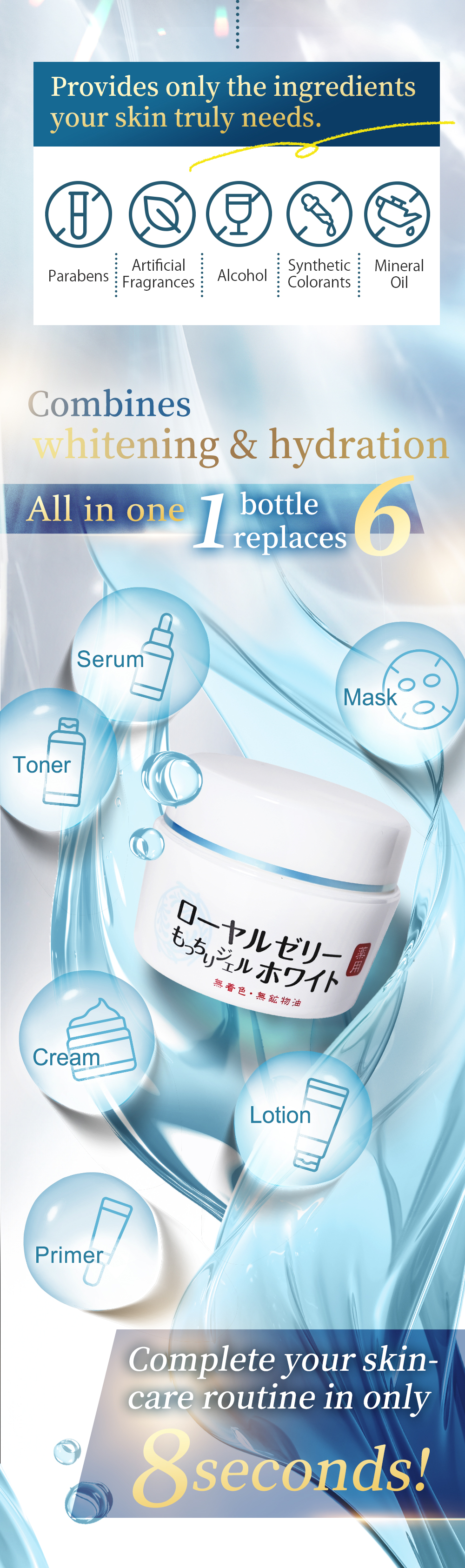 ・ 8-second whitening, refreshing,moisturizing and illuminating
