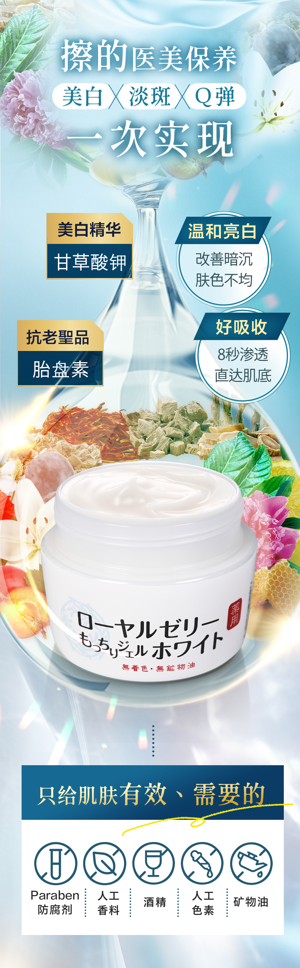 - 8秒润白,清爽保湿亮颜